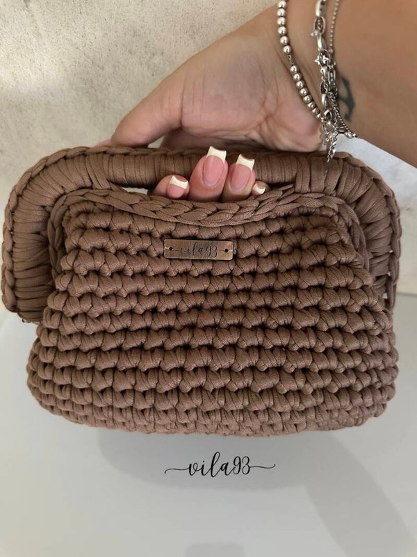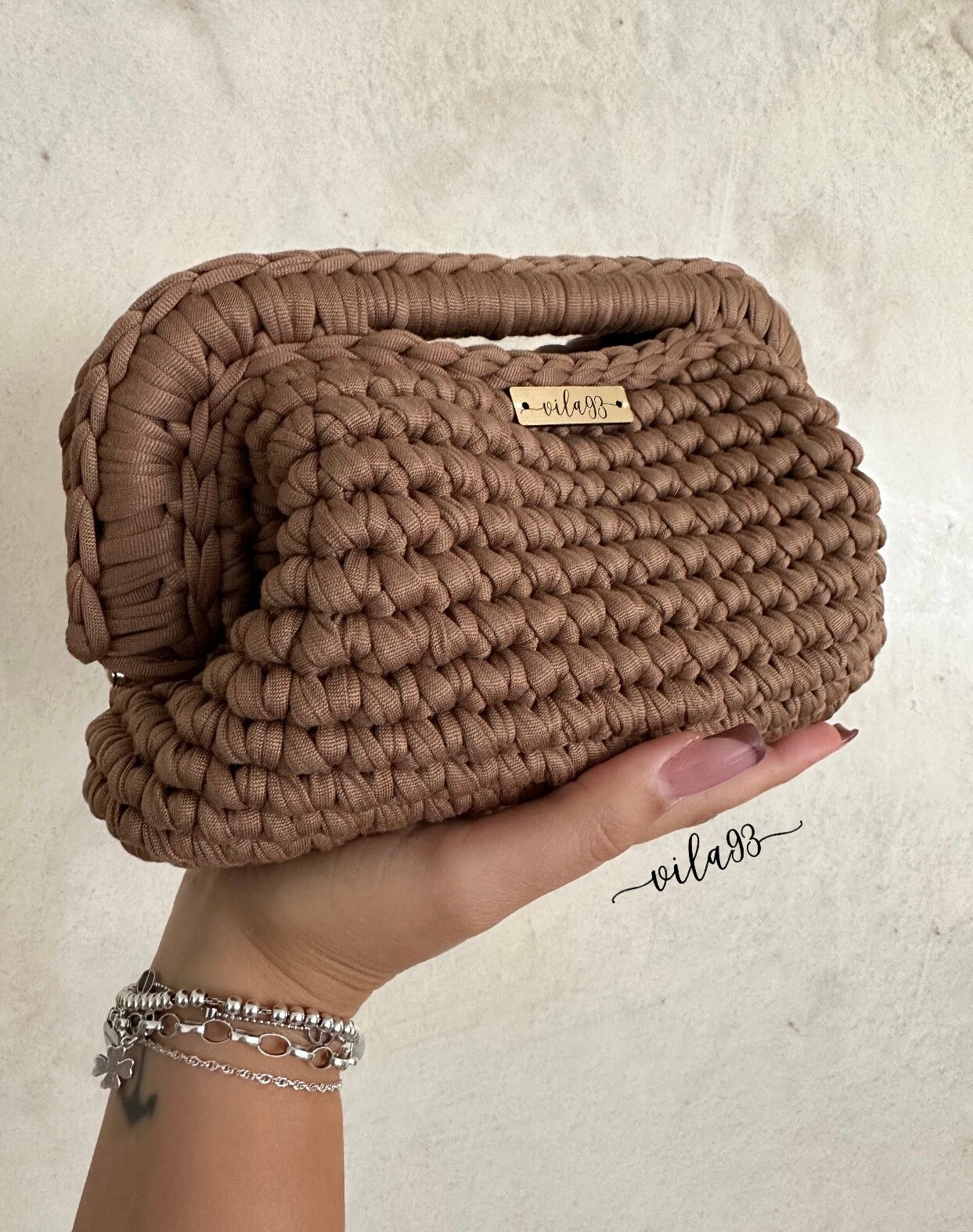 Modernes Design trifft auf liebevolle Handarbeit: Aus stabilem, naturbelassenem T-Shirt-Garn gehäkelt, überzeugt sie durch ihre klare Form und ihre hochwertige Verarbeitung. Ideal für Alltag, Dinner oder Event – ein Accessoire, das jedes Outfit aufwertet. Perfekt für alle, die das Besondere lieben.