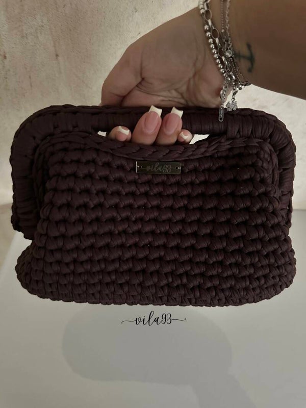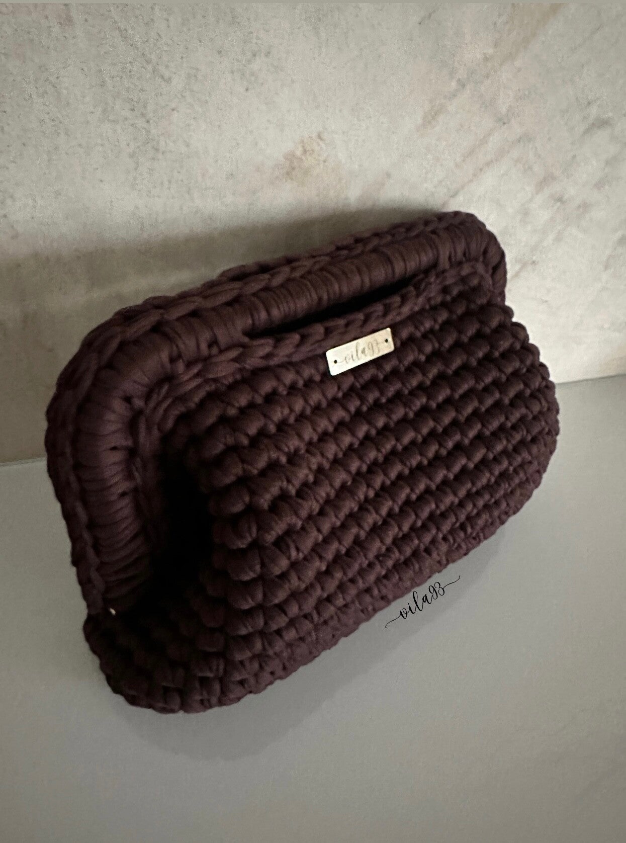 Modernes Design trifft auf liebevolle Handarbeit: Aus stabilem, naturbelassenem T-Shirt-Garn gehäkelt, überzeugt sie durch ihre klare Form und ihre hochwertige Verarbeitung. Ideal für Alltag, Dinner oder Event – ein Accessoire, das jedes Outfit aufwertet. Perfekt für alle, die das Besondere lieben.