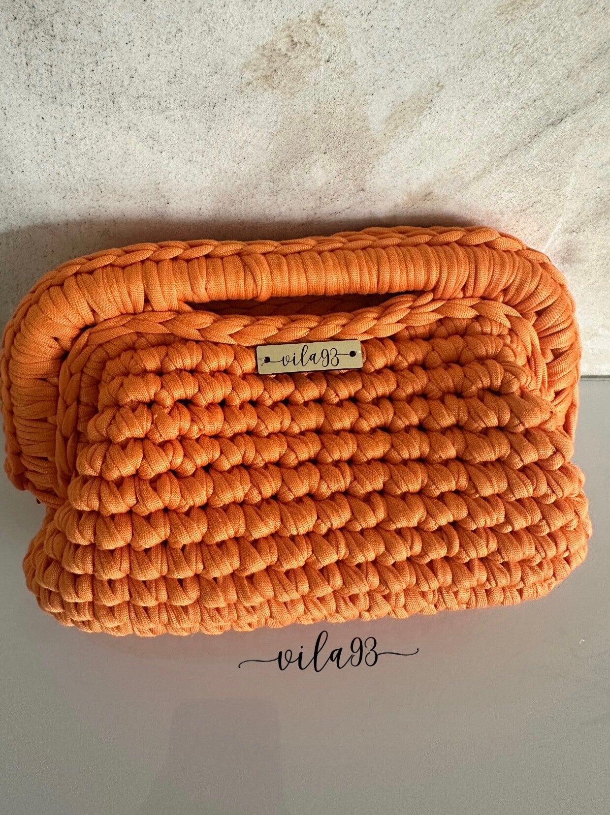 Modernes Design trifft auf liebevolle Handarbeit: Aus stabilem, naturbelassenem T-Shirt-Garn gehäkelt, überzeugt sie durch ihre klare Form und ihre hochwertige Verarbeitung. Ideal für Alltag, Dinner oder Event – ein Accessoire, das jedes Outfit aufwertet. Perfekt für alle, die das Besondere lieben.
