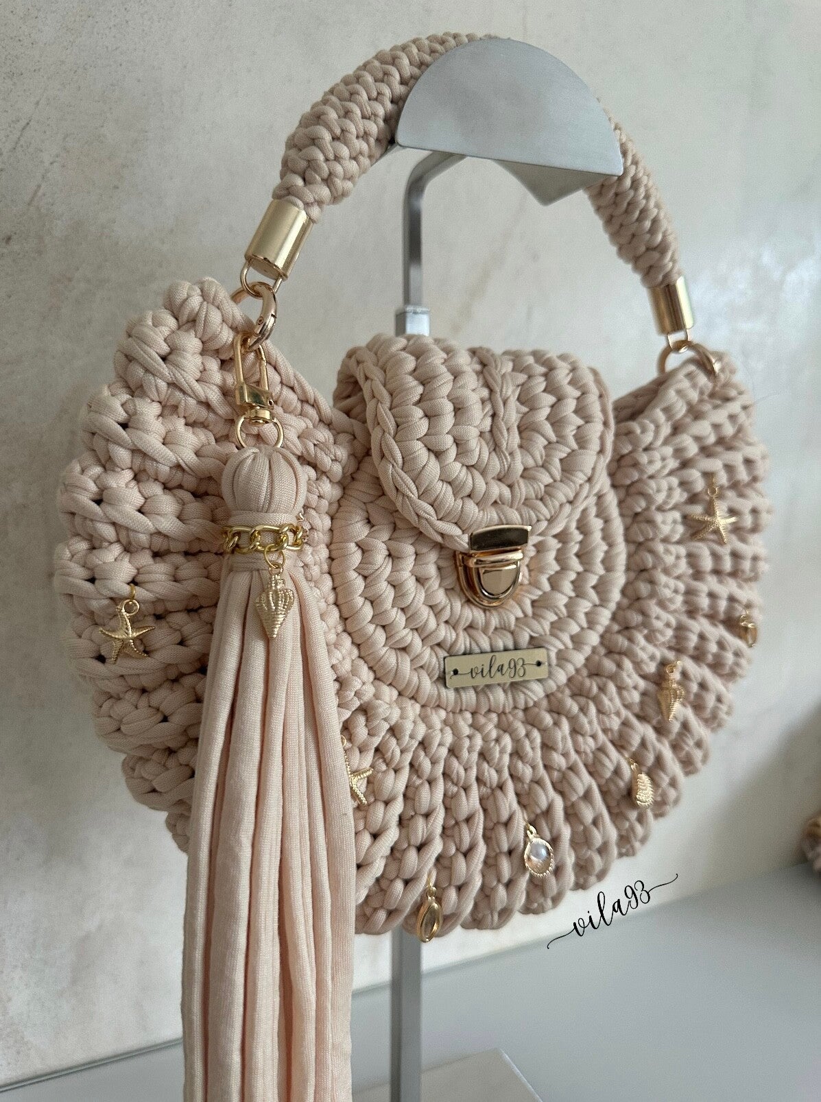 Handgehäkelt mit viel Liebe und perfekt für deinen Sommer-Look. Das Highlight? Zarte, goldige Muscheldetails, die jedes Outfit zum Hingucker machen.